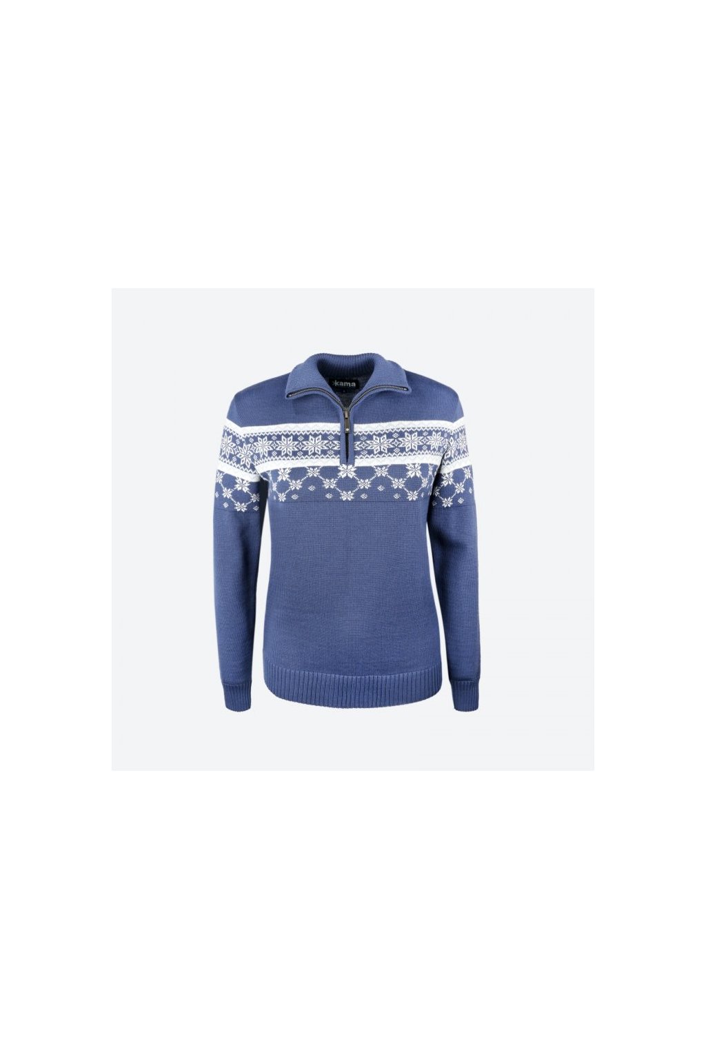 Športový dámsky sveter s jemným severským vzorom z Merino vlny. Rovnako ako naše ostatné svetre, je aj tento model vyrobený s maximálnym dôrazom na praktickosť a funkciu. Golier so zipsom je tak ako patenty okolo rukávov a tela vyrobený z pružnej rebrovanej pleteniny, vďaka ktorej drží tvar. Hrudník a ramená zdobí originálny jemný vzor.